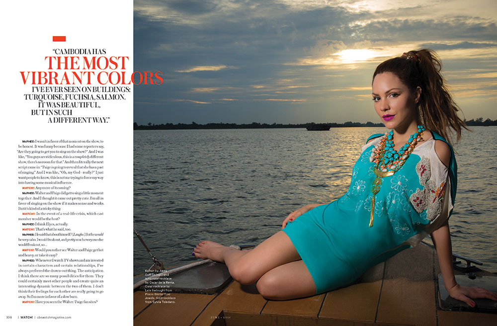 Scorpion star, Katharine McPhee, photographed on location in Vietnam and Cambodia, on board the Aqua Mekong.